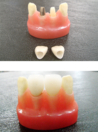 金属でできた歯の外部を、セラミックで覆ったかぶせものです。